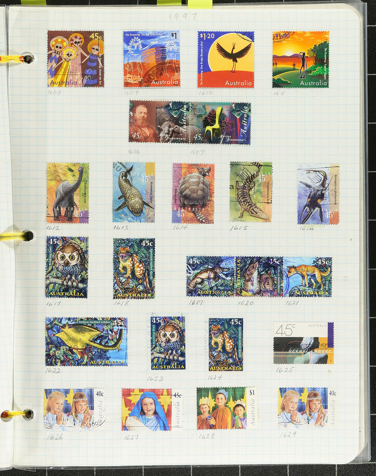 Nice collection of primarily used Australia, 1913-2001, containing a few thousand stamps on roughly 75 homemade and Minkus album pages. The collection generally ranges from Scott #1/1932, and includes a small selection of Kangaroos and KGV Heads, back of the book issues, including officials and postage dues, and much more. A cursory check indicated singles, sets, and partial sets cataloguing $10 and including J86-J95 (mh, c.v. $179 total), leaving other finds to collectors. A nice lot for the Australia collector, and should be continued until completion, overall fine to very fine. Owner's older 2013 Scott US$1,634.00 =