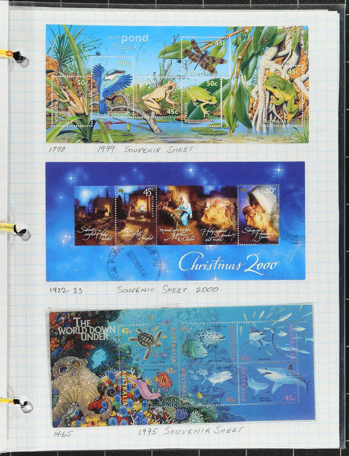 Nice collection of primarily used Australia, 1913-2001, containing a few thousand stamps on roughly 75 homemade and Minkus album pages. The collection generally ranges from Scott #1/1932, and includes a small selection of Kangaroos and KGV Heads, back of the book issues, including officials and postage dues, and much more. A cursory check indicated singles, sets, and partial sets cataloguing $10 and including J86-J95 (mh, c.v. $179 total), leaving other finds to collectors. A nice lot for the Australia collector, and should be continued until completion, overall fine to very fine. Owner's older 2013 Scott US$1,634.00 =