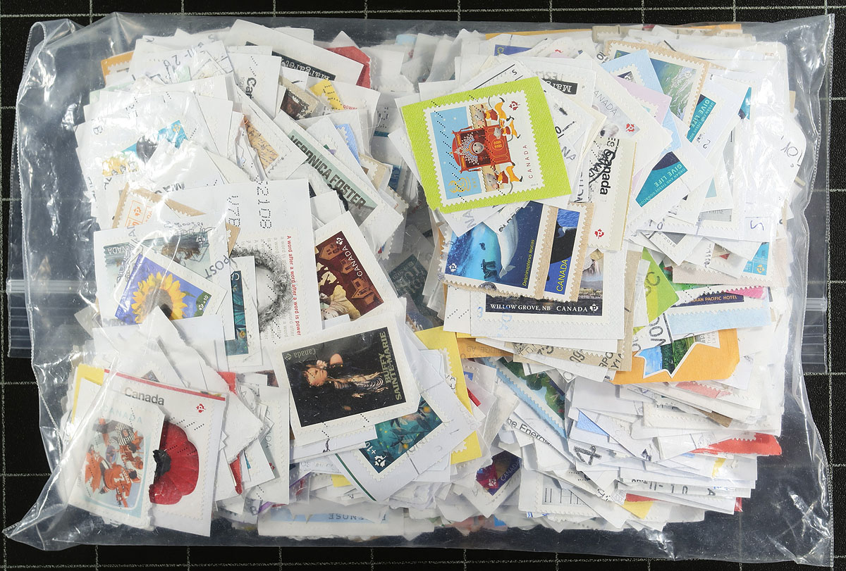 Modern used commemorative issue "kiloware". One pound (1lb) of COVID period issues and into 2023 used on close-cut single paper, likely with about 1400-1500 stamps in total. Clean selected material, in which we did not see any "pen cancels". About 90% of this mix will fall into the COVID period, 2020-2022 where postally used commemorative issues were seldom used. Increasingly tough to find material. Estimate =