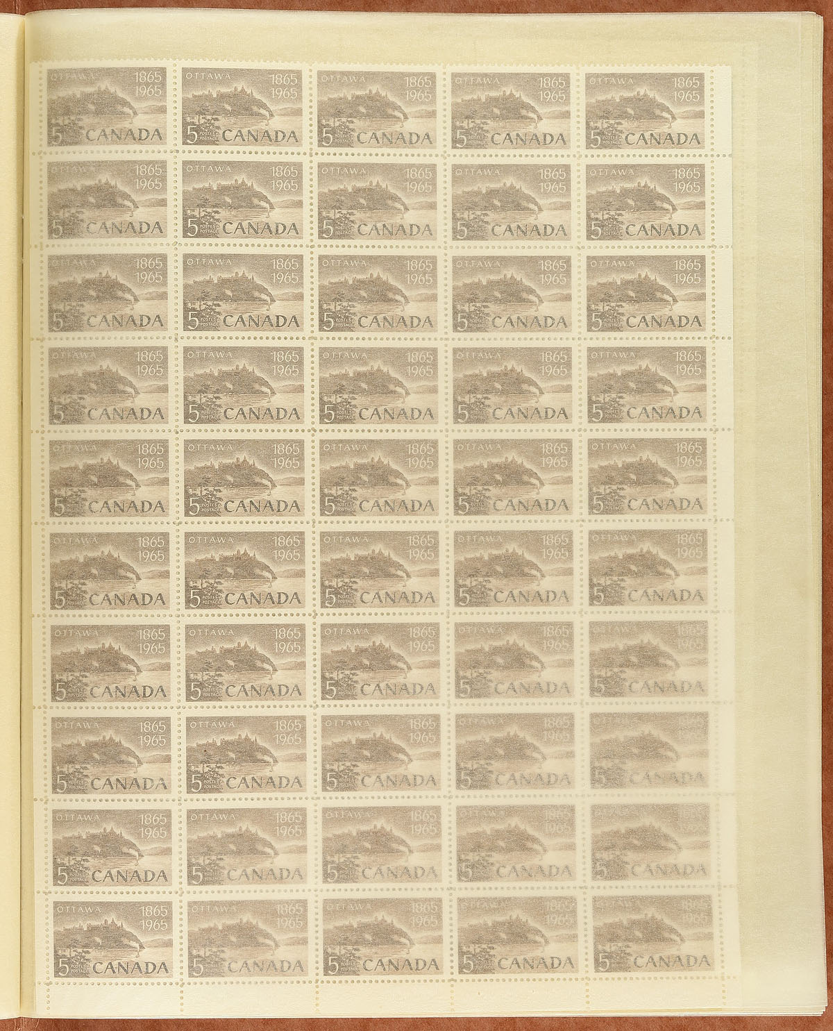 Mint Sheet Madness! A trio of mint sheet files, filled with a wide-array of mint sheets, partial sheets, Newfoundland a smattering of used multiples! Primarily from the early QEII to 1970's period, but also noted a few earlier including a 1934 New Brunswick block of 40 stamps, with Plate No.1 inscription (UL) and Newfoundland sheets for the 1947 Cabot, 1c Codfish (x2), 7c Queen Mother Mary. Other notable sheets include 1957 UPU Congress (15c), Provincial Flowers, QEII Karsh, Earth Sciences etc. Very conservatively valued for the face value alone, but certainly worth more. Inspect the photos of the lot to appreciate the scope and value. Total face value =