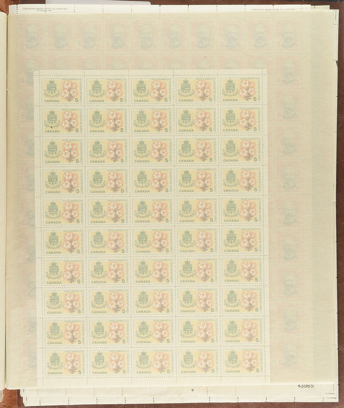Mint Sheet Madness! A trio of mint sheet files, filled with a wide-array of mint sheets, partial sheets, Newfoundland a smattering of used multiples! Primarily from the early QEII to 1970's period, but also noted a few earlier including a 1934 New Brunswick block of 40 stamps, with Plate No.1 inscription (UL) and Newfoundland sheets for the 1947 Cabot, 1c Codfish (x2), 7c Queen Mother Mary. Other notable sheets include 1957 UPU Congress (15c), Provincial Flowers, QEII Karsh, Earth Sciences etc. Very conservatively valued for the face value alone, but certainly worth more. Inspect the photos of the lot to appreciate the scope and value. Total face value =