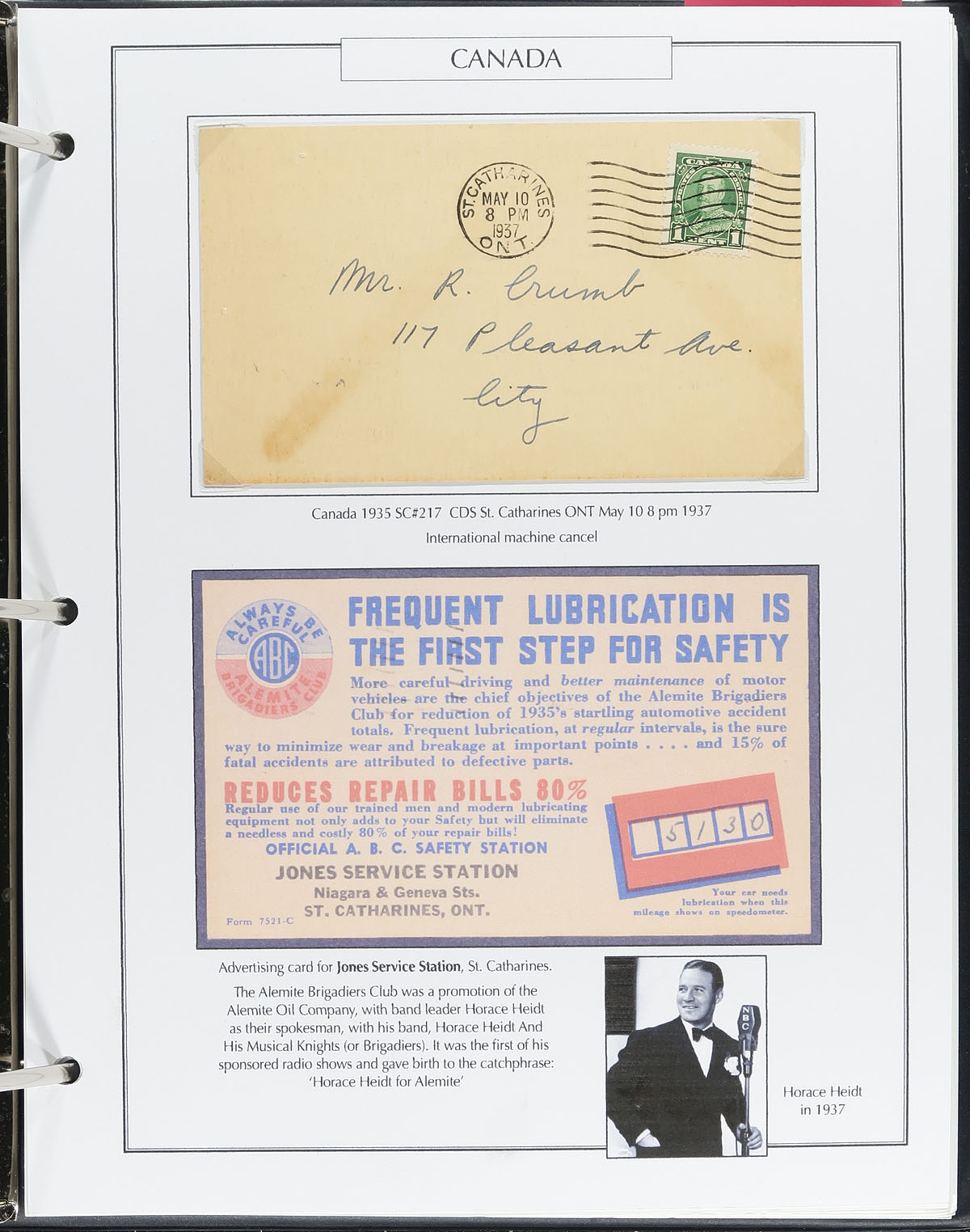 Extensively researched as assembled (on computer generated pages, in 3 binders) collection of over 190 covers and postcards, from QV to QEII. A real range of material here, some of which has obvious value, others which may seem more mundane at first glance, but have all be chosen to tell a philatelic story by the previous owner. Noted Small Queens, Postal Stationery, Advertising, Registered, Postmarks, RPPC (Real Photo Postcards) etc. The pictures show some of the better items, and overall this group will prove rewarding for any postal historian. Estimate =