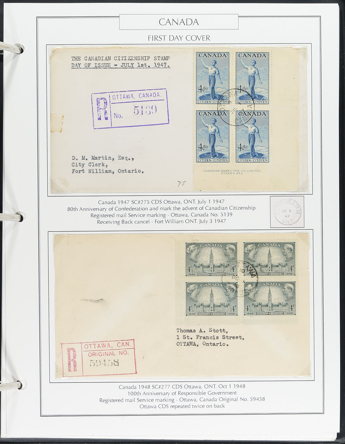 Extensively researched as assembled (on computer generated pages, in 3 binders) collection of over 190 covers and postcards, from QV to QEII. A real range of material here, some of which has obvious value, others which may seem more mundane at first glance, but have all be chosen to tell a philatelic story by the previous owner. Noted Small Queens, Postal Stationery, Advertising, Registered, Postmarks, RPPC (Real Photo Postcards) etc. The pictures show some of the better items, and overall this group will prove rewarding for any postal historian. Estimate =