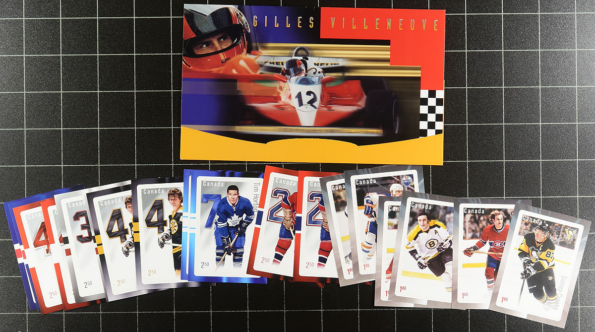 Balance of consignment offering of "odds and ends" with plenty of better items to satisfy any collector. Includes (in no particular order). 1) Used blocks, with about 40 blocks George VI to QEII including 1946 issued $1.00 Train Ferry /1953 issued $1.00 Totem. 2) "Hockey Cards" series stamps, with 18 issues ($2.50 values x 12, $1.80 values x6) with a total face value of $40.80 alone. 3) A couple of stockpages of Wildlife Conservation Stamp booklets 1985, 1986 x2, 1988, 1990, 1990, 1991 x2, 1993, 1994, 1995, 1996. 4) Modern Post Office "P" stamp miniature panes in Post Office sealed packs x5. 5) Thematic Collections x6 including Luner New Years, Historic Land Vehicles, Gilles Villeneuve etc. Lots of value here. Estimate =