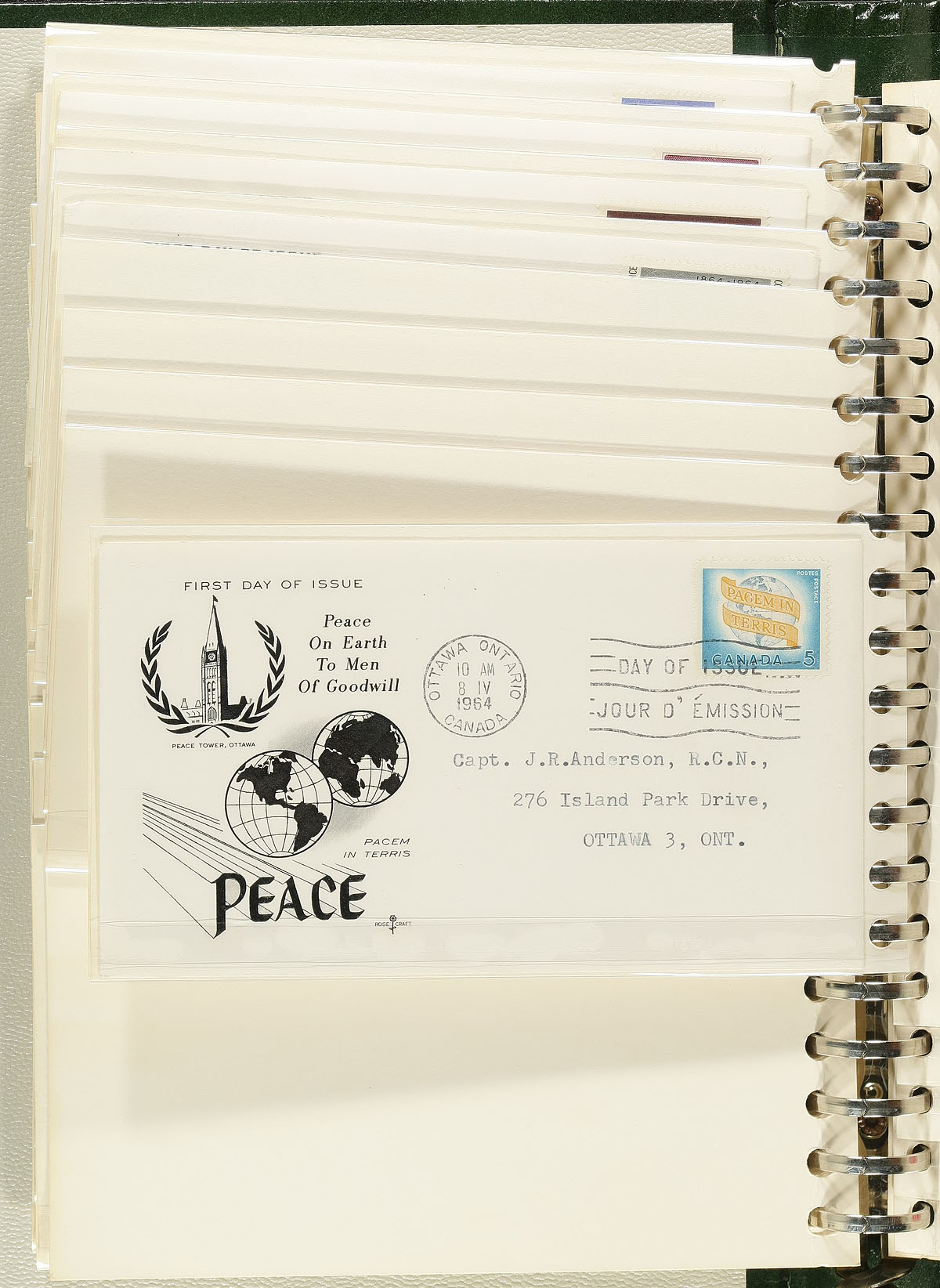 First Day Covers. A box of cover albums (x5) containing a collection of First Day Covers from the 1930's to 1980's. The bulk of the value is in three matching FDC albums (still in original boxes) with small format covers, being primarily private cachet covers (but also some non-cachet, and early small-format Canada Post issued), in which we noted a complete set of mid/high-value QEII Centennials. These three albums are complimented by a Unisafe FDC album with mostly Canada Post issued FDC and a small FDC album with Canada/ Foreign FDC. About 400 covers in total. Estimate =