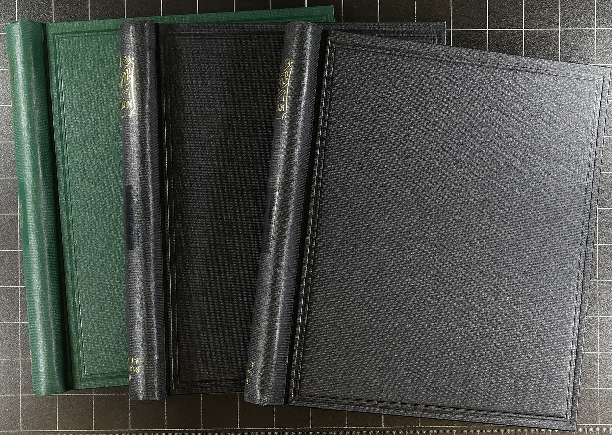 Stanley Gibbons Springback Albums. A very lightly used assembly of Stanley Gibbons brand springback albums in black, red and green. Branded as (mostly) the "Senator" and "Utile" albums, these albums hold a special place in philatelic history, always appreciated by those who still use this classic album format. Estimate =