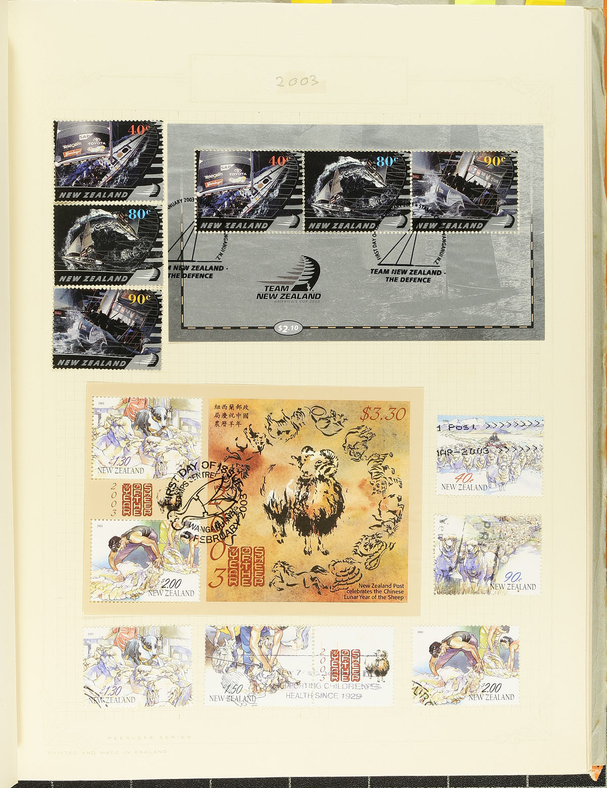Nice collection of modern used New Zealand in a Peerless quadrille page album, 2001-2010, containing roughly 400 stamps, including several souvenir sheets. The collection ranges from Scott #1695/2298, including a few back of the book issues, all seemingly having cto cancels. Owner's 2015 Scott catalogue value for the collection totals $867.00. Finding recent modern used of any country is a challenge in itself making this a nice lot for the New Zealand or worldwide collector. Estimate =