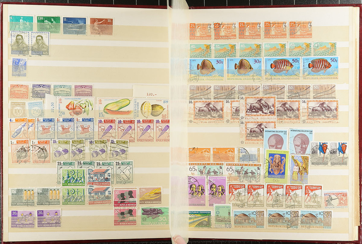 Hodgepodge of many thousands of worldwide stamps filling a uhaul carton, in a variety of formats, including several albums, stock pages, glassines and more. The material generally ranges from the 1890's to the 1970's, with better representation from European and British Commonwealth countries. Completely unchecked for catalogue values, leaving various finds and possibilities for the diligent collector. Fairly organized for a lot of this type, overall fine to very fine. Estimate =