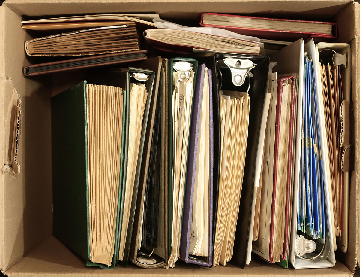 Hodgepodge of many thousands of worldwide stamps filling a uhaul carton, in a variety of formats, including several albums, stock pages, glassines and more. The material generally ranges from the 1890's to the 1970's, with better representation from European and British Commonwealth countries. Completely unchecked for catalogue values, leaving various finds and possibilities for the diligent collector. Fairly organized for a lot of this type, overall fine to very fine. Estimate =