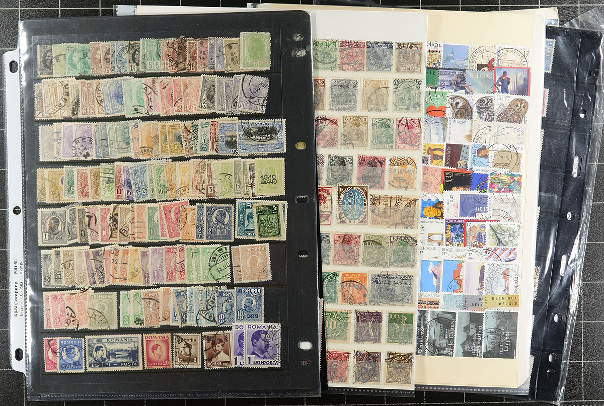 Hodgepodge of many thousands of worldwide stamps filling a uhaul carton, in a variety of formats, including several albums, stock pages, glassines and more. The material generally ranges from the 1890's to the 1970's, with better representation from European and British Commonwealth countries. Completely unchecked for catalogue values, leaving various finds and possibilities for the diligent collector. Fairly organized for a lot of this type, overall fine to very fine. Estimate =