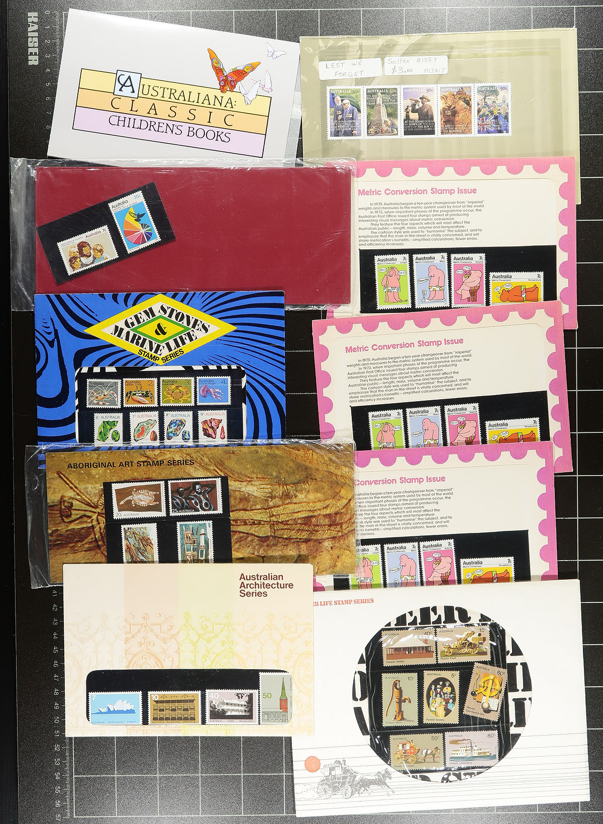 Group of never hinged Australia annual collections and presentation packs, 1970's-1990's, containing 24 items in total including annual collections from years 1984-1987, and 1995, along with an interesting America's Cup gift pack among others. A nice clean lot for all collectors. Estimate =