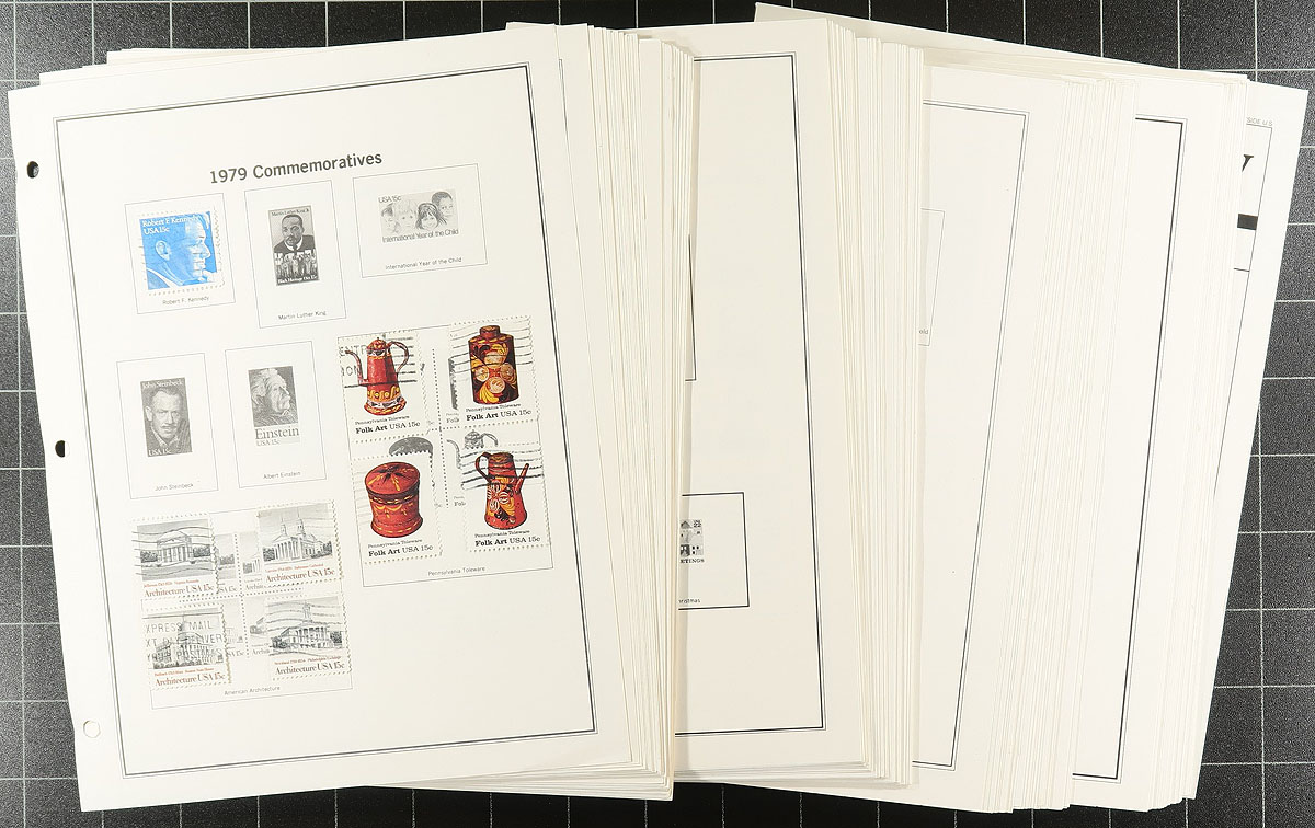 United States album pages "American Heirloom Collection of United States Stamps", in two volumes, with album pages for years 1847-1992, along with back of the book material and includes spaces for blocks and souvenir sheets. Gently used and waiting for a new owner. Estimate =
