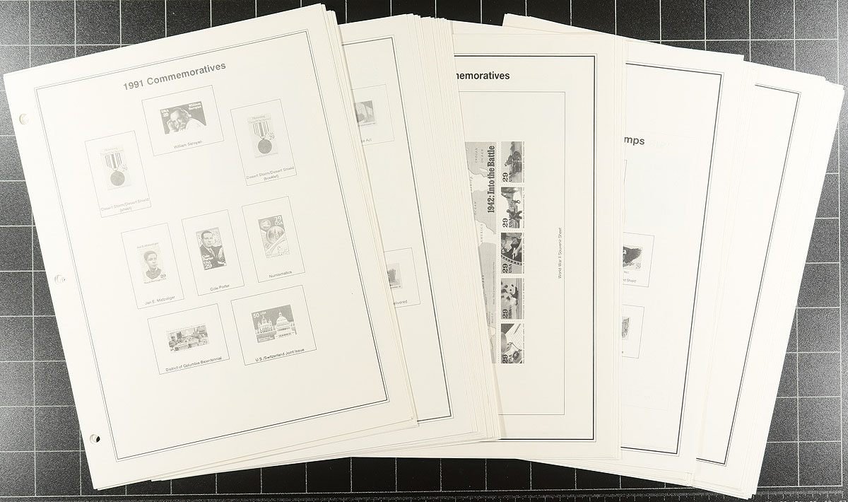 United States album pages "American Heirloom Collection of United States Stamps", in two volumes, with album pages for years 1847-1992, along with back of the book material and includes spaces for blocks and souvenir sheets. Gently used and waiting for a new owner. Estimate =