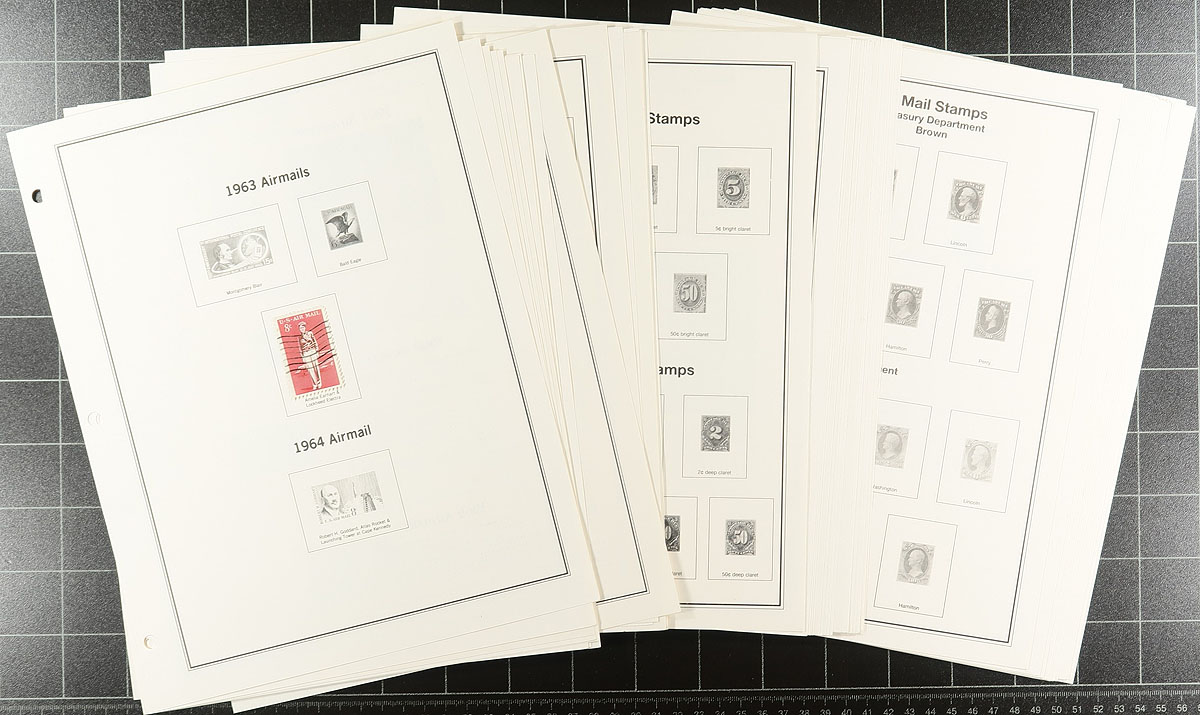 United States album pages "American Heirloom Collection of United States Stamps", in two volumes, with album pages for years 1847-1992, along with back of the book material and includes spaces for blocks and souvenir sheets. Gently used and waiting for a new owner. Estimate =