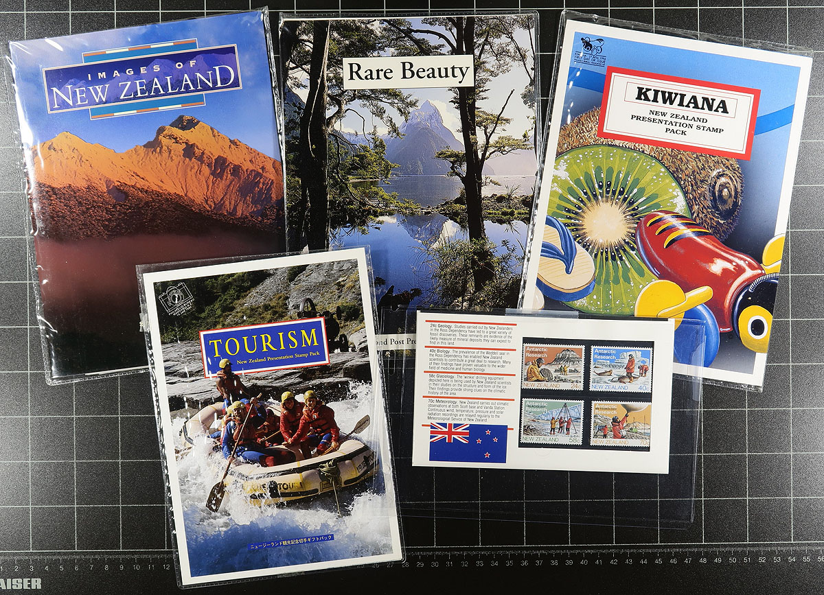 Group of never hinged New Zealand annual collections and presentation packs, 1980's-2000's, containing 25 items in total, including annual collections from years 1984-1987, 1998, 2008, along with several presentation packs which would be ideal for topical and thematic collectors. A very fine and clean lot. Estimate =