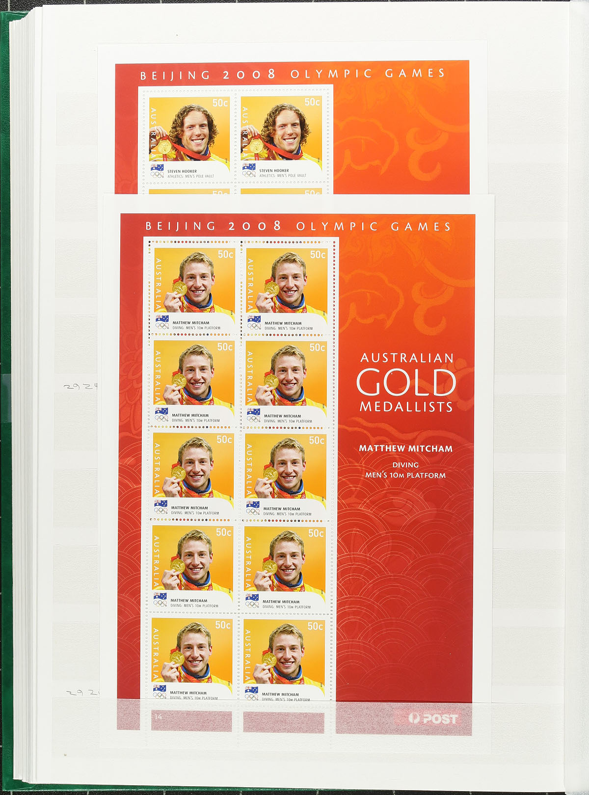 Collection Part 2. Lovely never hinged collection of modern Australia, 2006-2008, in a thick 64 page stockbook, containing several hundreds of stamps, along with blocks, booklet panes, and sheetlets. This neatly organized collection ranges from Scott #2540/2958, with spots made available for missing issues, noting sets, booklets, and souvenir sheets cataloguing from $8 to $15 and up each. Face value alone totaling $453. A super clean lot, that should be filled and enjoyed by all collectors. Very fine. 2026 Scott US$811.00 =