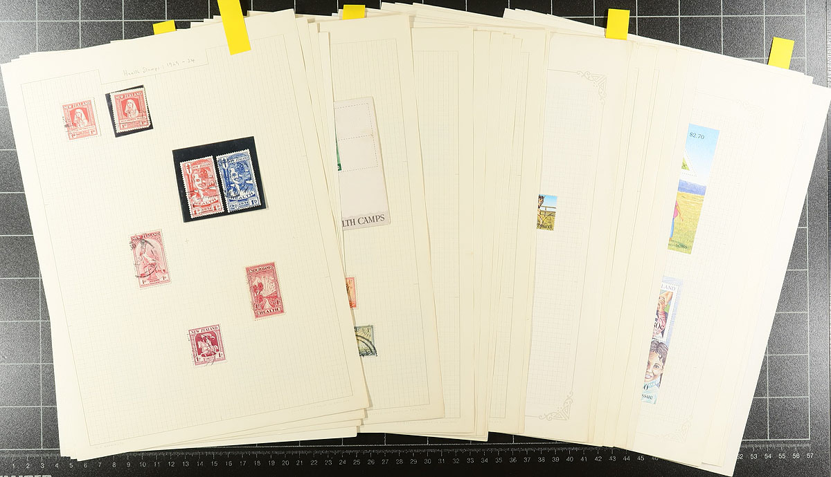 Nice collection of used New Zealand semi-postal "Health" issues, 1929-2000's, containing roughly 175 stamps in roughly 20 homemade pages. The collection ranges from Scott #B1/B165, including a few souvenir sheets, noting a few items cataloguing $10 and up, noting #B3-B4 "Laughing Boys" (c.v. $165 total). A nice little collection that should be expanded. Owner's older 2015 Scott US$582.00 =