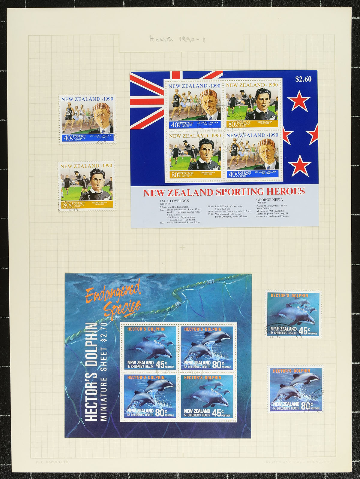 Nice collection of used New Zealand semi-postal "Health" issues, 1929-2000's, containing roughly 175 stamps in roughly 20 homemade pages. The collection ranges from Scott #B1/B165, including a few souvenir sheets, noting a few items cataloguing $10 and up, noting #B3-B4 "Laughing Boys" (c.v. $165 total). A nice little collection that should be expanded. Owner's older 2015 Scott US$582.00 =