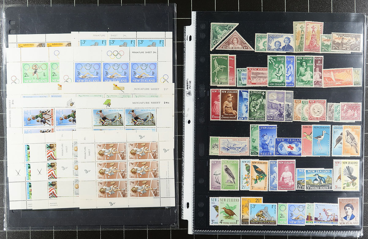 Clean collection of mint New Zealand semi-postal "Health" issues, 1943-1985, containing a few hundred stamps in a few stock pages. The collection ranges from Scott #B22/B123, noting sets and many souvenir sheets, noting a few items cataloguing $15 and up, and includes a mix of hinged and never hinged material. A nice collection that should be continued, overall fine to very fine. Owner's older 2015 Scott US$507.00 =
