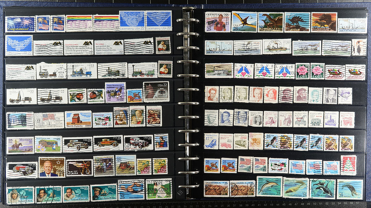 Consignment remainders of mint and used United States, 1900's-1999, containing a few thousand stamps in a variety of formats including a Lighthouse stockbook of many hundreds of used stamps (including a few precancels), presentation packs, blocks, annual collections, sheets, folios, and more. A cursory check of material indicated a few items cataloguing $10 and up, with a face value in excess of US$275.00. A nice lot with a variety of purposes, with online photos showing an overview. Estimate =