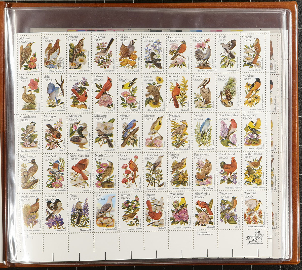 Consignment remainders of mint and used United States, 1900's-1999, containing a few thousand stamps in a variety of formats including a Lighthouse stockbook of many hundreds of used stamps (including a few precancels), presentation packs, blocks, annual collections, sheets, folios, and more. A cursory check of material indicated a few items cataloguing $10 and up, with a face value in excess of US$275.00. A nice lot with a variety of purposes, with online photos showing an overview. Estimate =