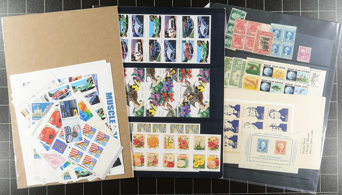 Consignment remainders of mint and used United States, 1900's-1999, containing a few thousand stamps in a variety of formats including a Lighthouse stockbook of many hundreds of used stamps (including a few precancels), presentation packs, blocks, annual collections, sheets, folios, and more. A cursory check of material indicated a few items cataloguing $10 and up, with a face value in excess of US$275.00. A nice lot with a variety of purposes, with online photos showing an overview. Estimate =