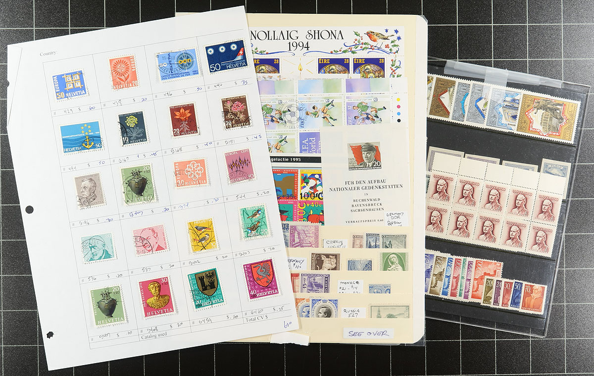 Nice accumulation of primarily used worldwide stamps, 1870's-1990's, containing roughly 1,500 stamps on over 30 stock or album pages. A cursory check indicated singles, and a few sets, with better representation from European countries, along with British Commonwealth and a few other areas, noting some material cataloguing $10 and up. Some of the material has been identified using Scott numbers, with a 2015 catalogue value totaling US$1,373.00. A nice lot for the worldwide collector looking to fill spaces, with online photos showing an overview, overall fine to very fine. Estimate =