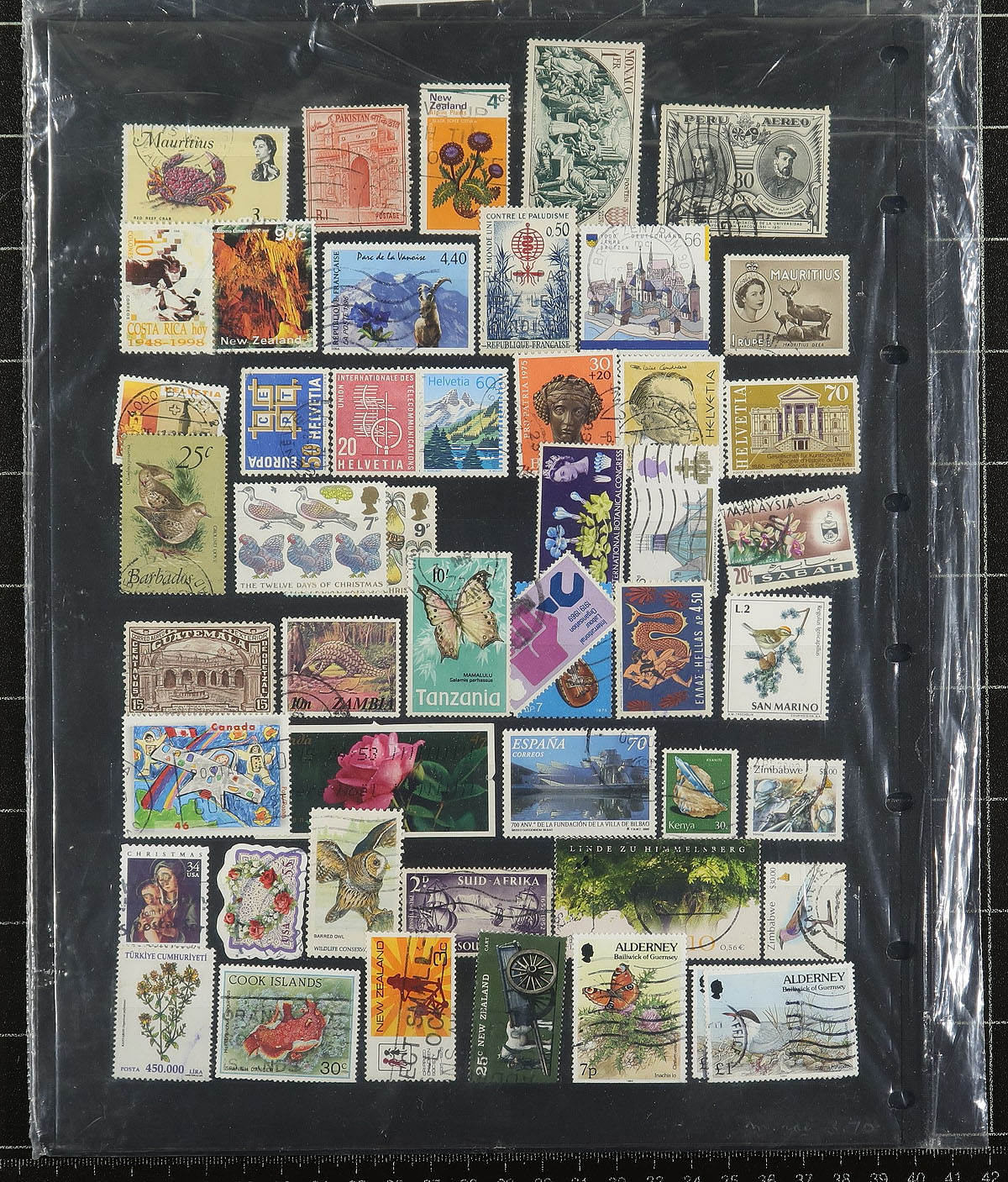 Nice accumulation of primarily used worldwide stamps, 1870's-1990's, containing roughly 1,500 stamps on over 30 stock or album pages. A cursory check indicated singles, and a few sets, with better representation from European countries, along with British Commonwealth and a few other areas, noting some material cataloguing $10 and up. Some of the material has been identified using Scott numbers, with a 2015 catalogue value totaling US$1,373.00. A nice lot for the worldwide collector looking to fill spaces, with online photos showing an overview, overall fine to very fine. Estimate =