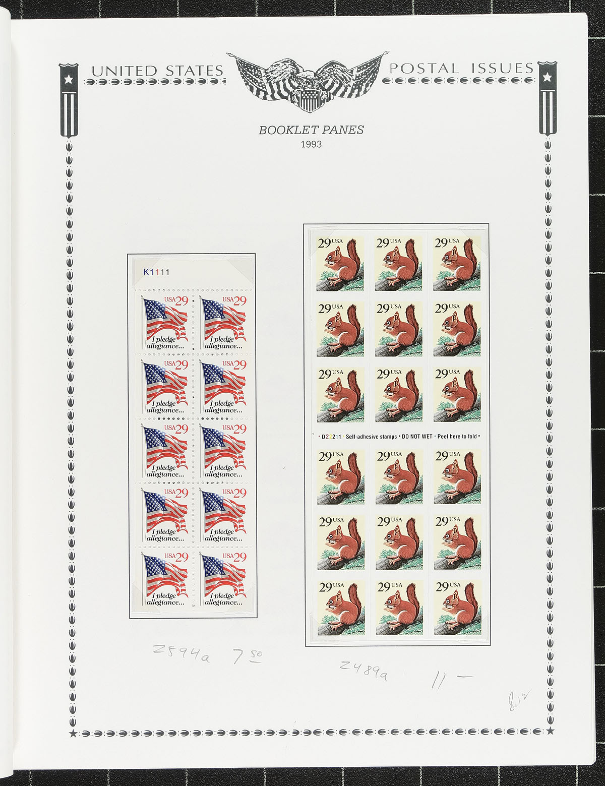 Nice group of never hinged unfolded United States booklet panes, 1992-1995, ranging from Scott #2489a/2919a, neatly mounted on album pages. Unfolded panes were only available through the philatelic service. Owner's 2006 Scott US Specialised catalogue value for the collection totals US$402.00, face value alone totals roughly US$160.00. A nice lot for all collectors, overall very fine. Estimate =