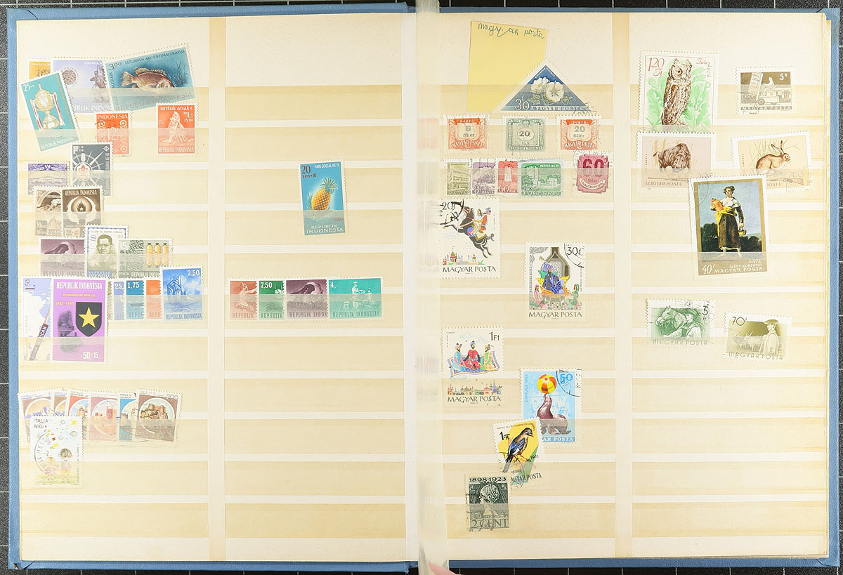 A philatelic potpourri box-lot. A interesting an useful sorting project, which includes two shoeboxes filed with stamps sorted by country / region / continent etc, two "Statesmen" albums containing several hundred stamps from "G to P" and then "M to Z", two 16-page stockbooks (one used Canada / the other mint and used worldwide), a bundle of about 50 mostly European covers and several packages / pages / loose items. A wonderful winter project, with many thousands of stamps. Estimate =