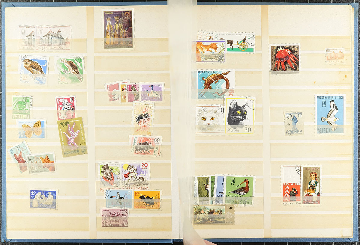 A philatelic potpourri box-lot. A interesting an useful sorting project, which includes two shoeboxes filed with stamps sorted by country / region / continent etc, two "Statesmen" albums containing several hundred stamps from "G to P" and then "M to Z", two 16-page stockbooks (one used Canada / the other mint and used worldwide), a bundle of about 50 mostly European covers and several packages / pages / loose items. A wonderful winter project, with many thousands of stamps. Estimate =