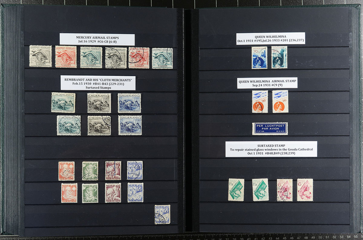 Remaindered (but still meaty) 1919 to 1947 period high quality collection, all neatly organized in a top-of-the-line black (all acetate) 64-page Lighthouse brand stockbook with matching dark green slipcase. The lot includes definitive, commemorative, airmail and semi-postal sets and singles, often with mint and used examples of each stamp. Take a good look at the scans, as many of the sets are neatly identified. Includes mint #278-81, many very good semi-postals, #C1 through C10, etc. Estimate =