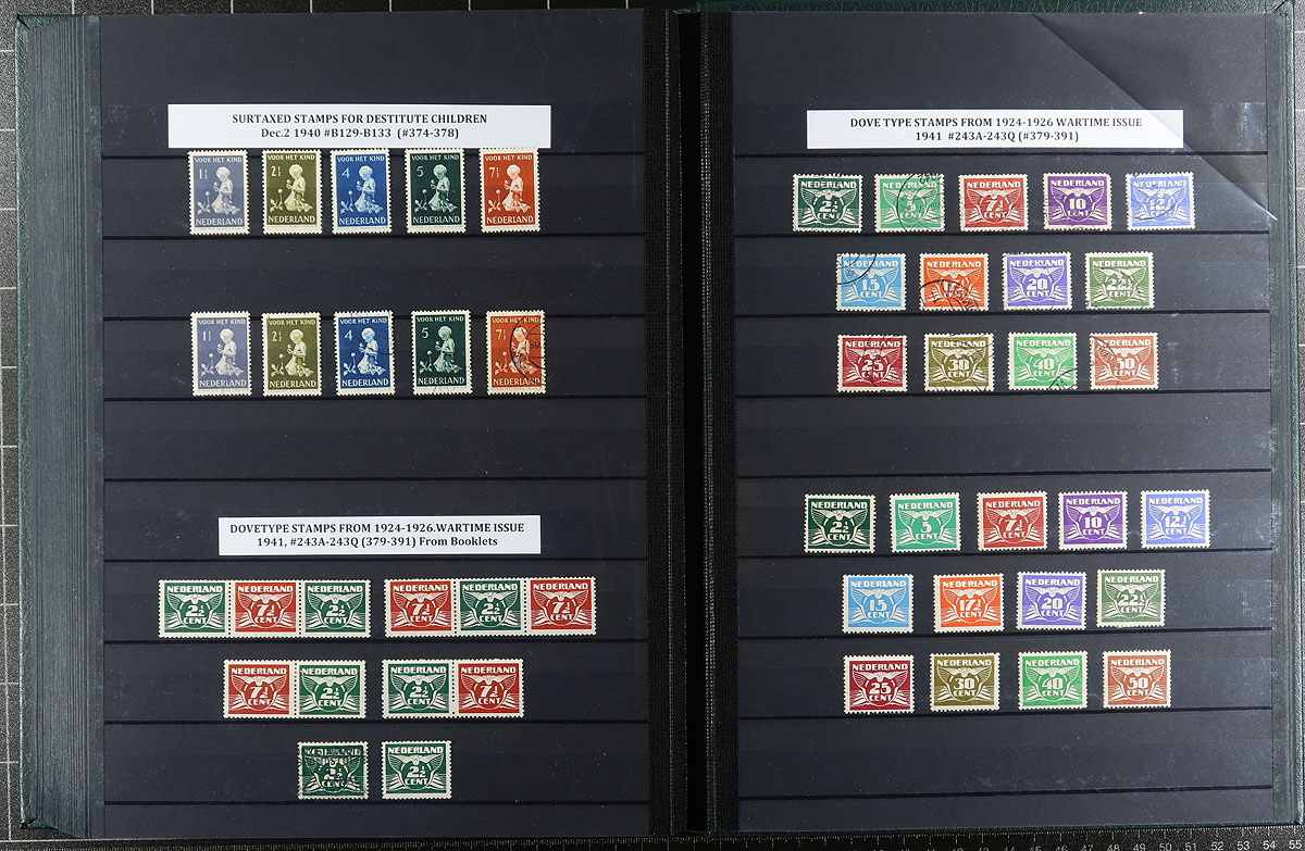 Remaindered (but still meaty) 1919 to 1947 period high quality collection, all neatly organized in a top-of-the-line black (all acetate) 64-page Lighthouse brand stockbook with matching dark green slipcase. The lot includes definitive, commemorative, airmail and semi-postal sets and singles, often with mint and used examples of each stamp. Take a good look at the scans, as many of the sets are neatly identified. Includes mint #278-81, many very good semi-postals, #C1 through C10, etc. Estimate =