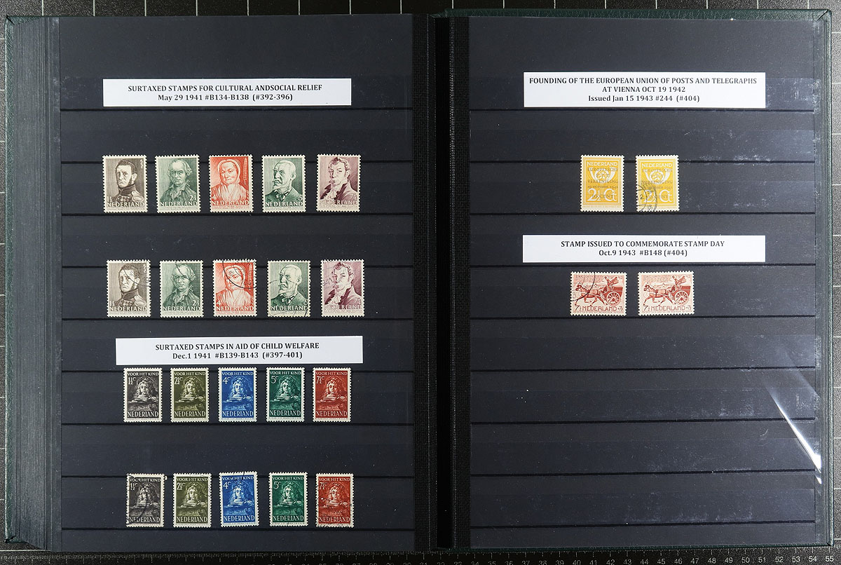 Remaindered (but still meaty) 1919 to 1947 period high quality collection, all neatly organized in a top-of-the-line black (all acetate) 64-page Lighthouse brand stockbook with matching dark green slipcase. The lot includes definitive, commemorative, airmail and semi-postal sets and singles, often with mint and used examples of each stamp. Take a good look at the scans, as many of the sets are neatly identified. Includes mint #278-81, many very good semi-postals, #C1 through C10, etc. Estimate =