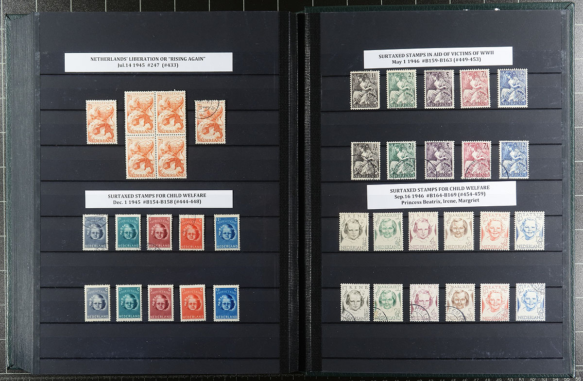Remaindered (but still meaty) 1919 to 1947 period high quality collection, all neatly organized in a top-of-the-line black (all acetate) 64-page Lighthouse brand stockbook with matching dark green slipcase. The lot includes definitive, commemorative, airmail and semi-postal sets and singles, often with mint and used examples of each stamp. Take a good look at the scans, as many of the sets are neatly identified. Includes mint #278-81, many very good semi-postals, #C1 through C10, etc. Estimate =
