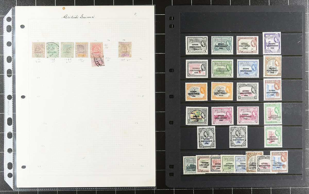 Mostly British Atlantic material, with a touch of Africa. A series of bid board lots, dealer offerings, album fragments etc. Mint, used, classic-era to the 1980’s, with a touch of duplication. We saw lots of Falkland Islands (with some "Dependencies"), St. Helena, British Guiana, Guyana and three pages with South Africa, Rhodesia, Zanzibar. A surprising amount of this was catalogued at one time, which will add up to several hundred dollars by Scott. Estimate =