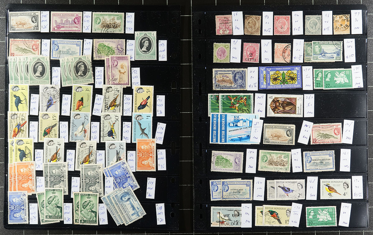 Mostly British Atlantic material, with a touch of Africa. A series of bid board lots, dealer offerings, album fragments etc. Mint, used, classic-era to the 1980’s, with a touch of duplication. We saw lots of Falkland Islands (with some "Dependencies"), St. Helena, British Guiana, Guyana and three pages with South Africa, Rhodesia, Zanzibar. A surprising amount of this was catalogued at one time, which will add up to several hundred dollars by Scott. Estimate =