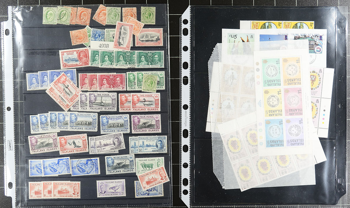 Mostly British Atlantic material, with a touch of Africa. A series of bid board lots, dealer offerings, album fragments etc. Mint, used, classic-era to the 1980’s, with a touch of duplication. We saw lots of Falkland Islands (with some "Dependencies"), St. Helena, British Guiana, Guyana and three pages with South Africa, Rhodesia, Zanzibar. A surprising amount of this was catalogued at one time, which will add up to several hundred dollars by Scott. Estimate =