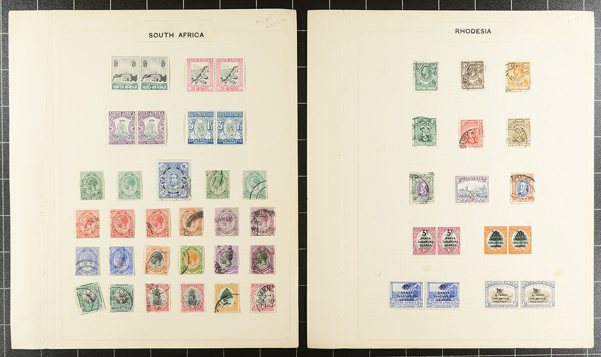 Mostly British Atlantic material, with a touch of Africa. A series of bid board lots, dealer offerings, album fragments etc. Mint, used, classic-era to the 1980’s, with a touch of duplication. We saw lots of Falkland Islands (with some "Dependencies"), St. Helena, British Guiana, Guyana and three pages with South Africa, Rhodesia, Zanzibar. A surprising amount of this was catalogued at one time, which will add up to several hundred dollars by Scott. Estimate =