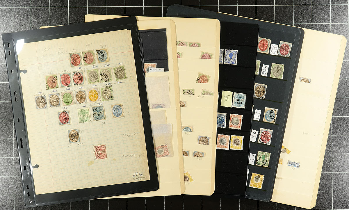 A half dozen stockpages and a couple of mounted groups with more used than mint, which appeared to be this collector’s group of material in transit from purchase to collection or stock. We noted a copy of #11, with some overprints right up to the Christian X issue during the Great War. Condition is definitely mixed, but understanding this lot will make you a much more knowledgeable collector of this Caribbean colony. Estimate =