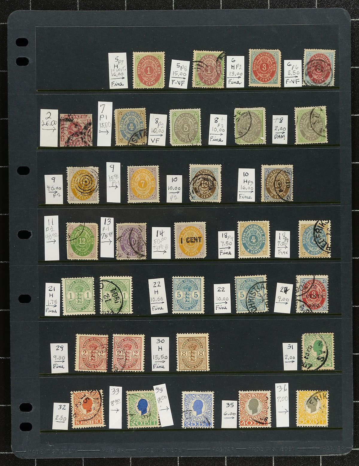 A half dozen stockpages and a couple of mounted groups with more used than mint, which appeared to be this collector’s group of material in transit from purchase to collection or stock. We noted a copy of #11, with some overprints right up to the Christian X issue during the Great War. Condition is definitely mixed, but understanding this lot will make you a much more knowledgeable collector of this Caribbean colony. Estimate =
