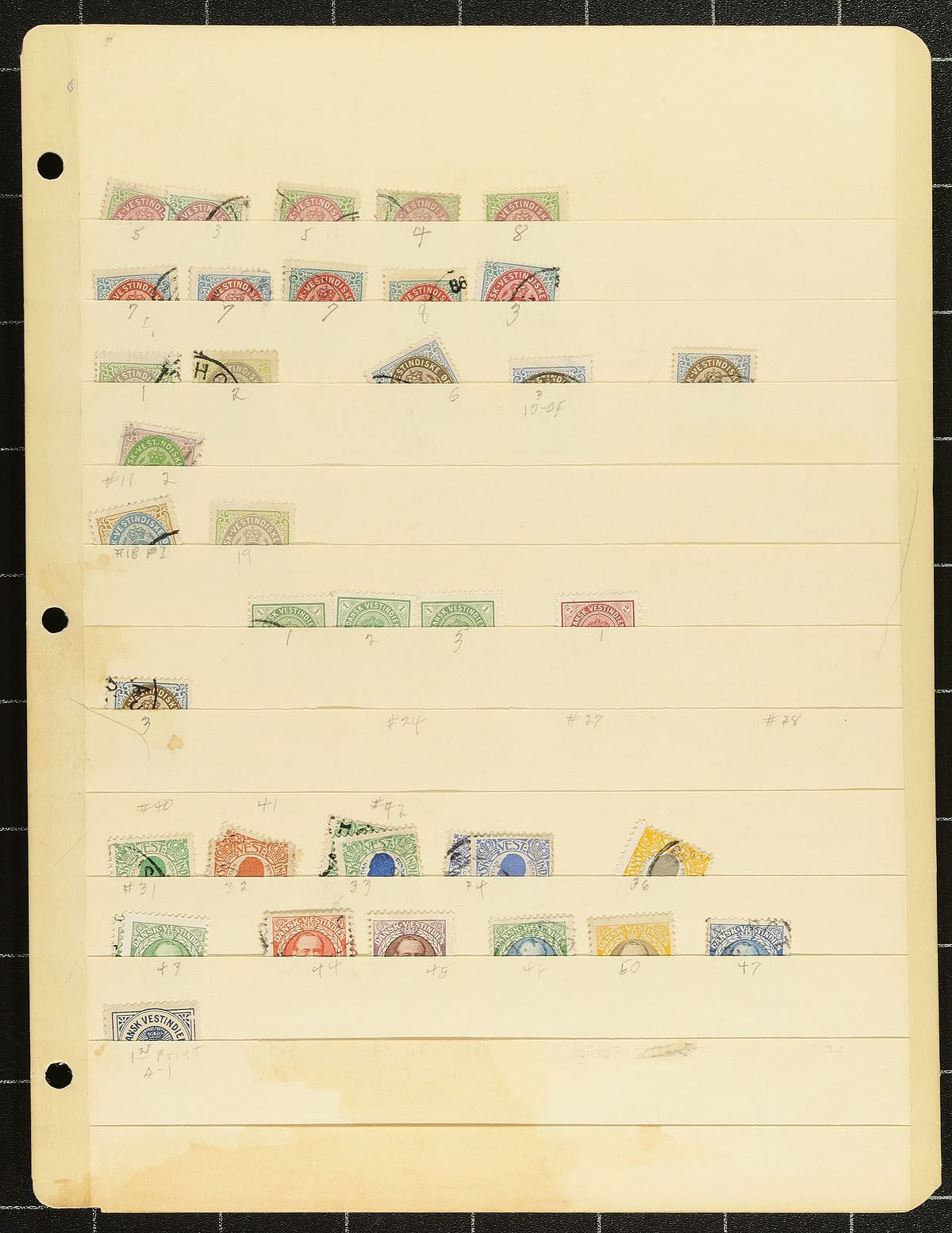 A half dozen stockpages and a couple of mounted groups with more used than mint, which appeared to be this collector’s group of material in transit from purchase to collection or stock. We noted a copy of #11, with some overprints right up to the Christian X issue during the Great War. Condition is definitely mixed, but understanding this lot will make you a much more knowledgeable collector of this Caribbean colony. Estimate =