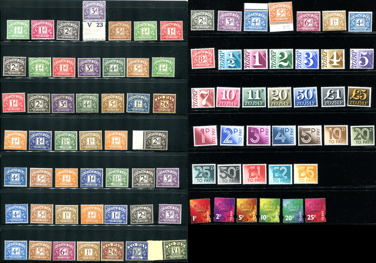 Extensive and all different mint postage due offering, with good representation from all issues and a few complete sets. Fresh with the earlier being hinged (a couple might have remnants), the middle period are lightly hinged and the more modern are mostly never hinged. Face values to £5. Better individual singles includes #J30, #J33, #J38, #J40, #J48. 2024 Scott US$657.70 =