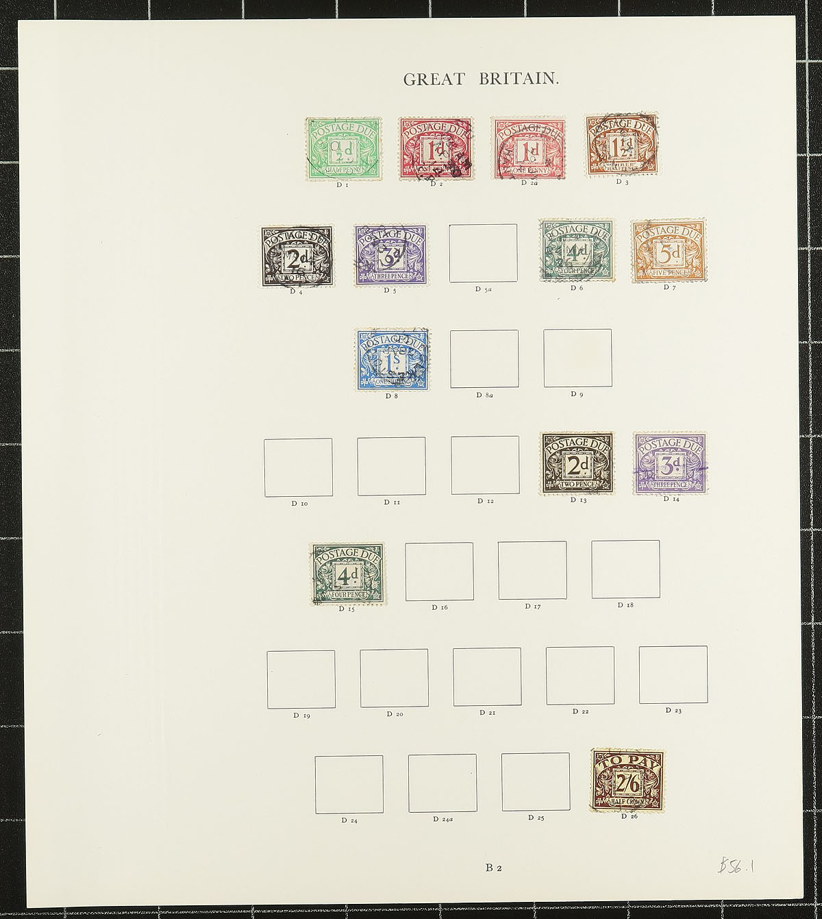 Windsor album remnant part 3 (#88/291 plus Postage Dues): Late Queen Victoria era to the end of the King George VI period. Lots of attractive and often high catalogue value stamps, noting the 1887 Jubilee issue, the KEVII issue to 2/6, a large herd of 2/6 and 5/- "Seahorses". Lots of shades, some beautiful cancels. Condition is a bit mixed, as is normal for this period. A couple of obviously damaged or dubious have not been counted. A used collection from a local estate who collected by Stanley Gibbons (the accuracy has not been verified by us). We estimate the current Scott catalogue value to be around $2500.00. Estimate =