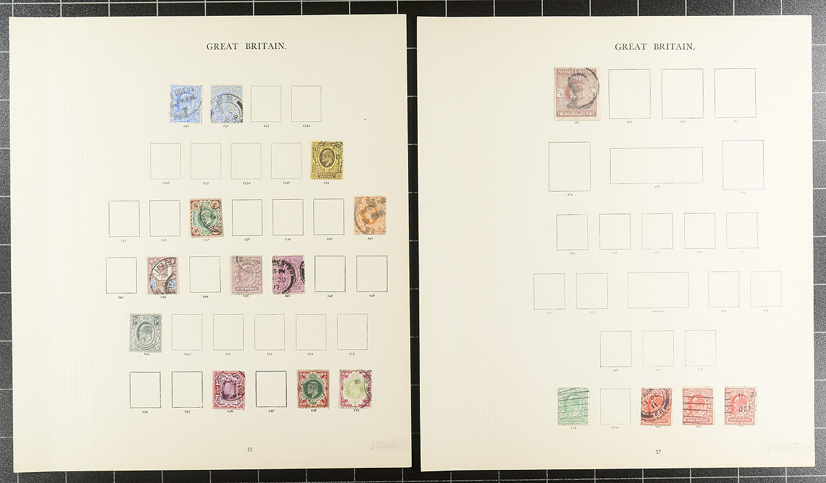 Windsor album remnant part 3 (#88/291 plus Postage Dues): Late Queen Victoria era to the end of the King George VI period. Lots of attractive and often high catalogue value stamps, noting the 1887 Jubilee issue, the KEVII issue to 2/6, a large herd of 2/6 and 5/- "Seahorses". Lots of shades, some beautiful cancels. Condition is a bit mixed, as is normal for this period. A couple of obviously damaged or dubious have not been counted. A used collection from a local estate who collected by Stanley Gibbons (the accuracy has not been verified by us). We estimate the current Scott catalogue value to be around $2500.00. Estimate =