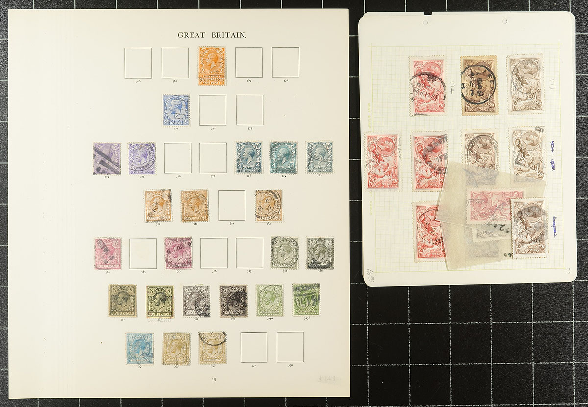 Windsor album remnant part 3 (#88/291 plus Postage Dues): Late Queen Victoria era to the end of the King George VI period. Lots of attractive and often high catalogue value stamps, noting the 1887 Jubilee issue, the KEVII issue to 2/6, a large herd of 2/6 and 5/- "Seahorses". Lots of shades, some beautiful cancels. Condition is a bit mixed, as is normal for this period. A couple of obviously damaged or dubious have not been counted. A used collection from a local estate who collected by Stanley Gibbons (the accuracy has not been verified by us). We estimate the current Scott catalogue value to be around $2500.00. Estimate =