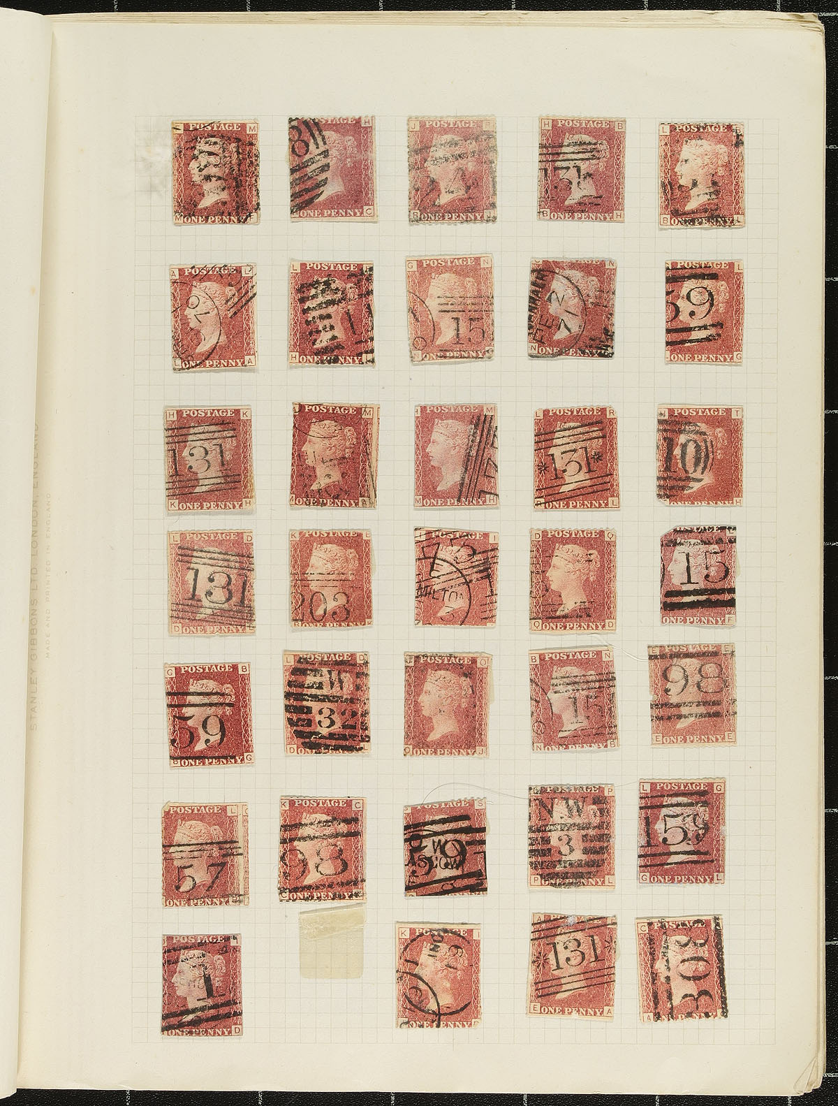 Six-page plate study of the 1864 "Penny Red" with plates up to 222, missing only a few. Comes with "bonus" material of an extra Windsor "page 5" with some overlap, plus a few earlier perforated 1d red and 2d blue. The other bonus is an old #33 plate study with about 350 stamps, which alas many were removed with scissors, but there could be some worthwhile survivors here. Estimate =