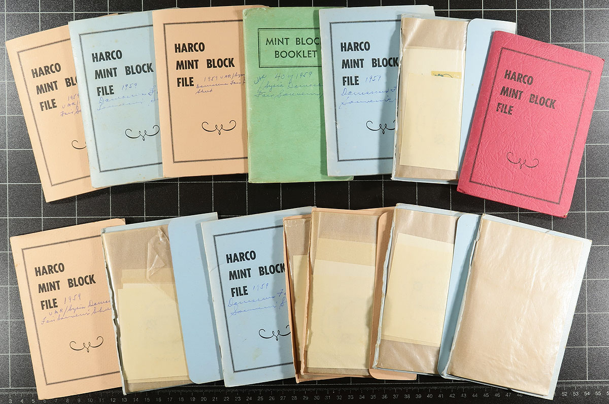 Souvenir Sheet hoard in an envelope box, with 8 different sheets from five different countries with topical appeal. Mexico has four items #975a (Olympics x100), #1103 (1985 Independence anniversary x25), #1389 (Satellites x25), #C310a (Olympics x300). Syria - UAR #31 (x720), Guinea #C51 (Red Cross x500), Hong Kong #792 (Classic Series #10 - red mailbox x100). All are mint never hinged. The only cancelled to order is from Madagascar #1189 (Panther x50). A couple of thousand dollars of catalogue value here, in excellent condition. Estimate =