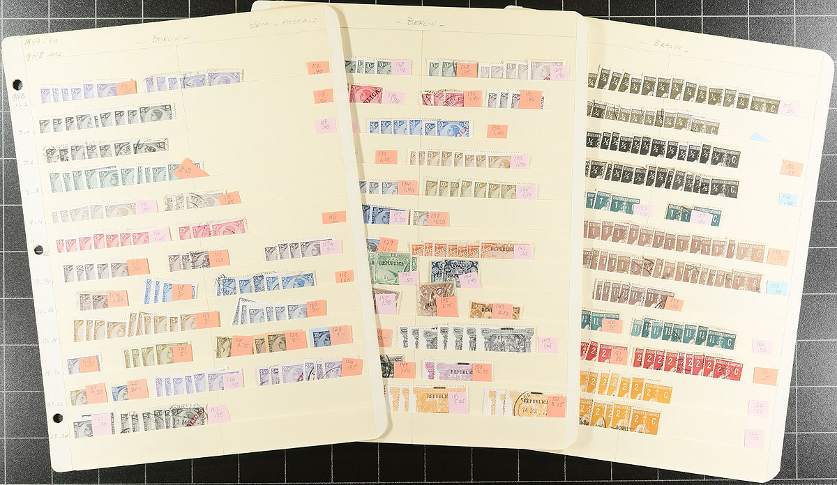 A tidy 16-page collector accumulation with good coverage of regular and "back of the book" issues. Both mint and used, with each stamp identified by Scott and a 10-year-old catalogue price. Some notable singles include #47 (mint and used), #53 (x5 used), #53a (used), #54 (x4 used). Lots of Azores and Republica overprints and Portuguese colonial common design issues. Up to 10 of a type, with some cancel potential amongst the used. Lots of value here. Estimate =