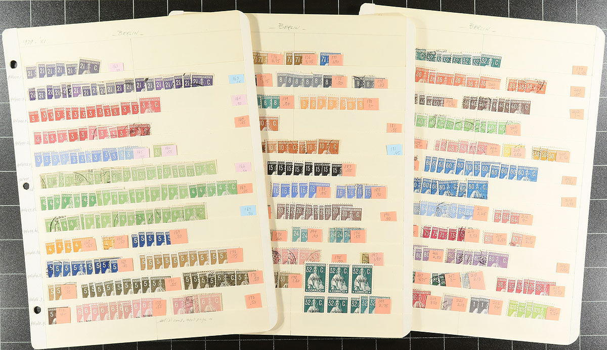 A tidy 16-page collector accumulation with good coverage of regular and "back of the book" issues. Both mint and used, with each stamp identified by Scott and a 10-year-old catalogue price. Some notable singles include #47 (mint and used), #53 (x5 used), #53a (used), #54 (x4 used). Lots of Azores and Republica overprints and Portuguese colonial common design issues. Up to 10 of a type, with some cancel potential amongst the used. Lots of value here. Estimate =